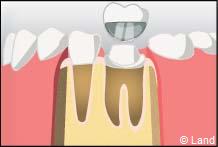 • les couronnes de substitution, ou dents à pivot, qui interviennent lorsque la destruction de la couronne naturelle de la dent est totale, et nécessite d’utiliser le canal radiculaire pour y placer un tenon (ou pivot).