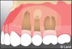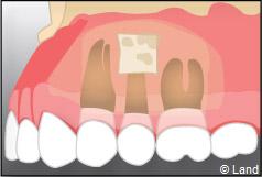 La fermeture de la cavité s’effectue souvent à l’aide de points de suture servant à réunir les bords de la gencive.
